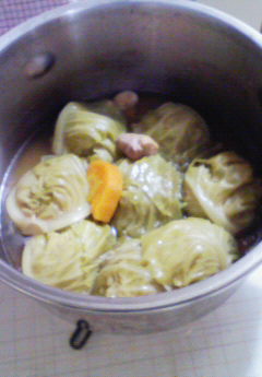 圧力鍋でキャベツをとっても軟らかく煮てあります。