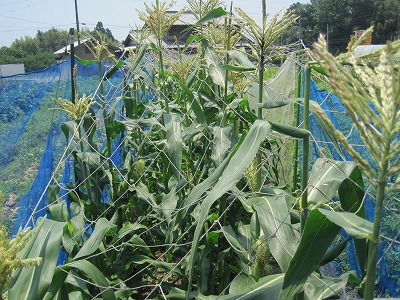 去年、研修で風で倒れたとうもろこしを直してたら、