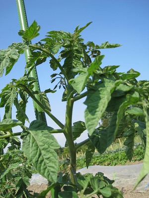 ここ数日他の畑の定植作業が忙しく、トマトの様子を見てなかったなぁっと思って