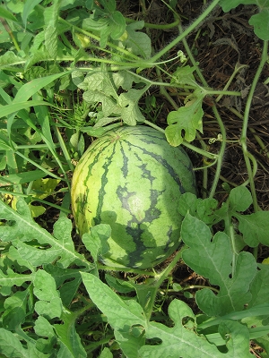 畑の片隅にあるスイカの存在を完全に忘れてました…。