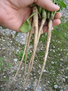 選んで、抜いてみると、キレイにまっすぐな小さな大根が出てきます。