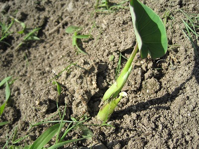 4月の中頃に植えたと思う里芋の芽が出てきました。