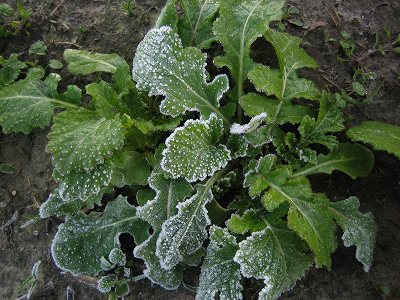 間引きする予定のからし菜が凍っちゃってるじゃないですか!!??