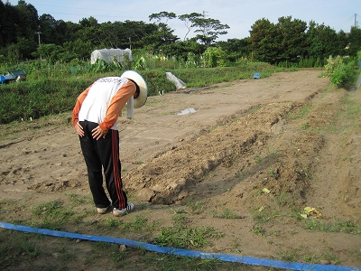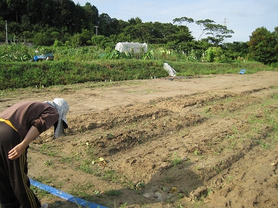 本日の作業は、じゃがいもの畑の準備と、ウリ科の種まきです。