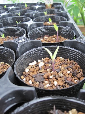 発芽するまでは穴がたくさん開いたプラグトレイに種を播くのですが、