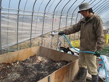 今回は、踏み込み温床を作るとのことで、見学をさせていただきました。