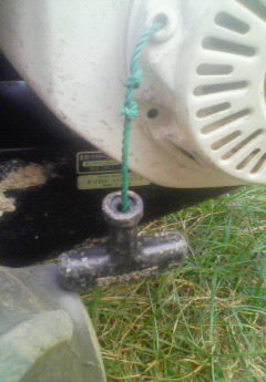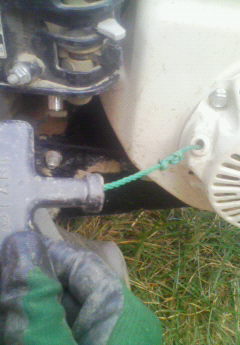 耕運機のエンジンをかけるため、ヒモ(リコイルスタータ紐っていうらしい。)を