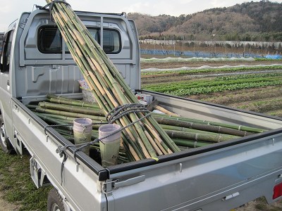 数日前に知り合いの人に支柱にする竹が欲しかったら