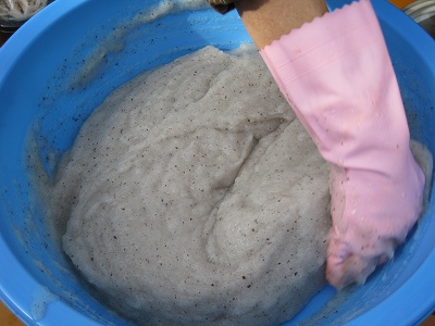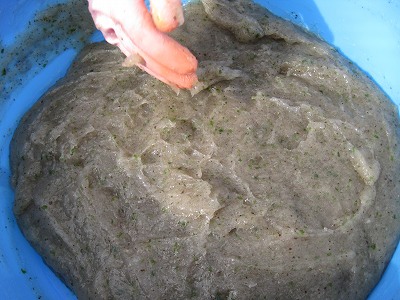 ミキサーで混ぜたものを手で混ぜ混ぜします。