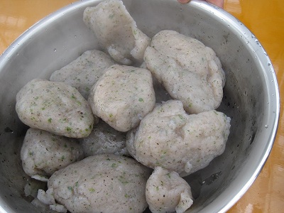 十分混ぜ混ぜしたら、こんにゃくを丸めます。